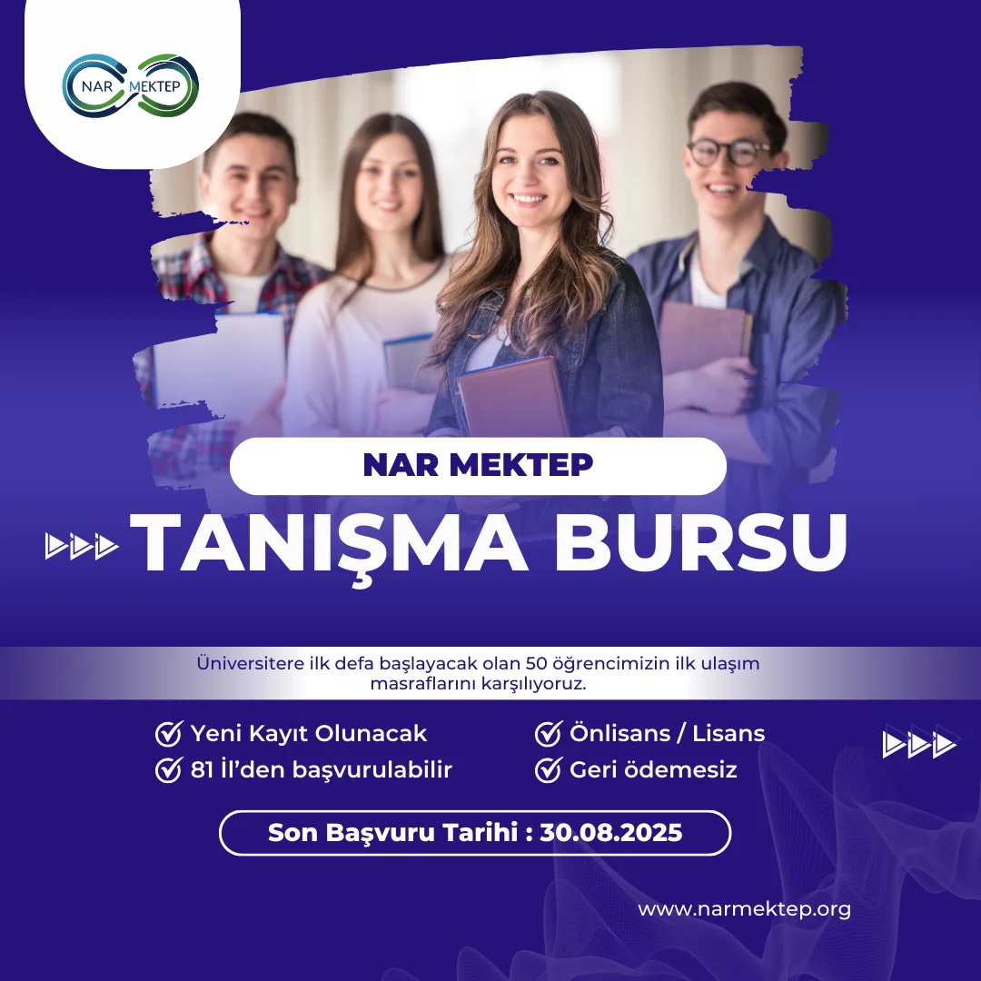 Üniversite yerleştirme sonuçları açıklandıktan sonra, hayatının en heyecan verici dönemine başlayan öğrencilerimize destek olmak istiyoruz. Nar Mektep Derneği olarak, 2025 yılında üniversiteye yeni kayıt yaptıran gençlere eğitim yolculuklarının ilk adımında burs veriyoruz.